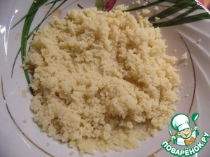 Кус-кус залить кипящим подсоленным бульоном, закрыть крышкой. оставить на 10 минут.