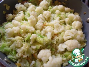 Добавить цветную капусту, тушить еще 2-3 минуты.