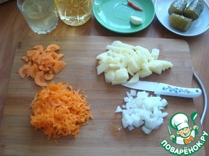 Готовим специи. Чеснок или давим, или мелко рубим. Я очень люблю семена укропа в рассольнике. Такой вкус они ему придают!!! И всегда кладу в рассольник сухие петрушку и укроп. Этот вкус совсем другой, чем у свежих.