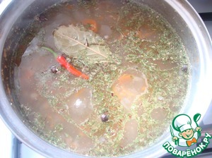 Вот теперь в кастрюлю добавляем рассол и досаливаем рассольник по вкусу. Доводим до кипения и снимаем с огня.