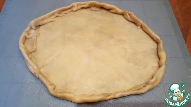 Размягчённое масло перетираем в крошку с мукой. Добавляем яйцо. Формируем шар. Убираем в холодильник. Если срочно нужно всех кормить, то можно сразу раскатать тесто. Края чуть закатываем.