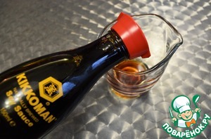 • Готовим заправку из смеси соевого соуса ТМ Кikkoman, оливкового масла и гранатового соуса.