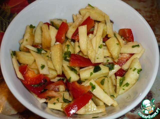 Наташа, спасибо за вкусный и витаминный салат!!! Перец у меня красный, а яблочко - зеленое.Второй день готовлю салат с репой. Довольна!