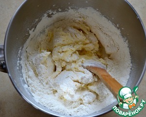 Затем добавить в несколько этапов просеянную муку и замесить не очень густое тесто.