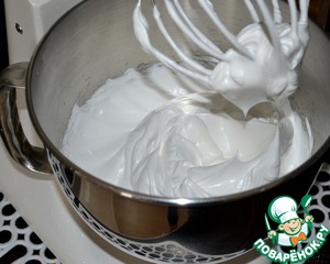 Для крема белки взбить с сахаром в крепкую пену (можно добавить несколько капель лимонного сока).
