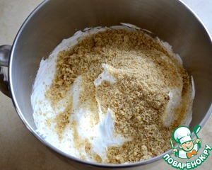 Добавить молотые грецкие орехи и осторожно перемешать их с белковым кремом.