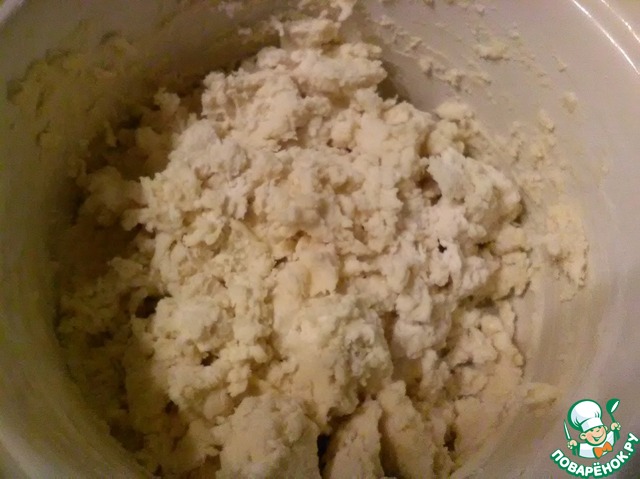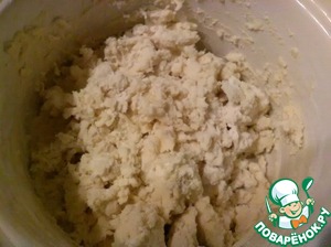 Смешиваем масло с 3 стаканами муки и хорошо перетираем до однородности