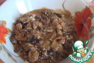 Отправляем жарить в сковороду с тремя ложками подсолнечного масла. Жарим на большом огне, помешивая, пока выпарится вся жидкость. Добавляем соль и черный молотый перец по вкусу и выключаем плиту
