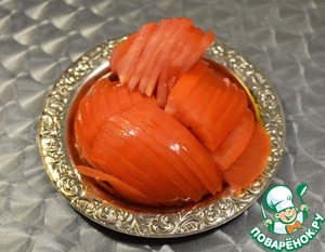 Помидор режем тонкими четвертинками. Тоже отправляем в маш.
