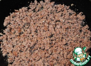 Потом вилкой разбиваем блинчик на мелкие кусочки. Ещё обжариваем немного.