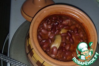 Выкладываем в казан фасоль. Тушим ещё минут десять.