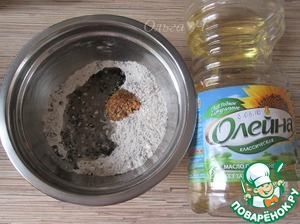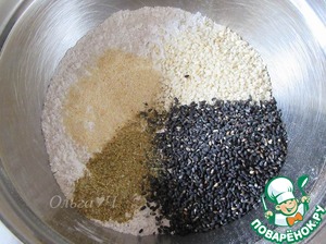 Пока варится суп, приготовить хлебцы. Смешать оба вида муки, соль, перец и разрыхлитель.