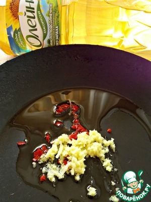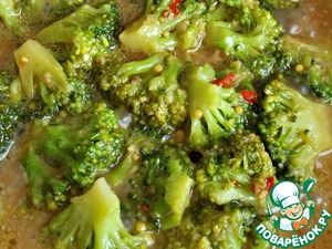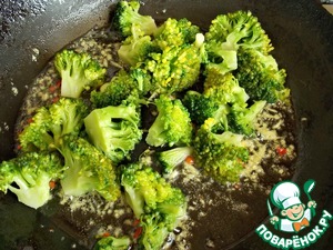 Капусту разделить на соцветия и варить в кипящей, соленой воде. Свежую от 4-6 мин., замороженную от 6-8 мин. в зависимости от величины соцветия. Слить воду и остудить. Имбирь натереть, перец мелко порезать и обжарить на масле "Олейна" 1-2 мин.