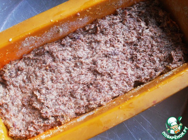 "Затем выкладываем остаток лука, остаток моркови, остаток печеночного фарша, солим, перчим, промазываем сметаной, смешанной с майонезом.