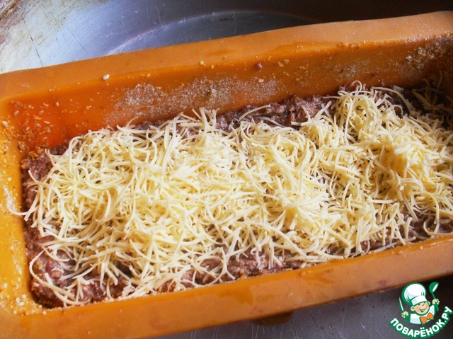 На этом этапе я занялась немного отсебятиной. После слоя печени я добавила тертый сыр твердый. Так слои прекрасно перехватились и держались монолитно.