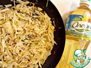 В это время мелко шинкуем белокочанную капусту, сельдерей и обжариваем на 2 ст. л. масла "Олейна" примерно 6-7 мин. до зажаривания.