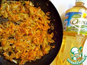Морковь трем, лук мелко режем и обжариваем в 2 ст. л. масла "Олейна" до готовности.