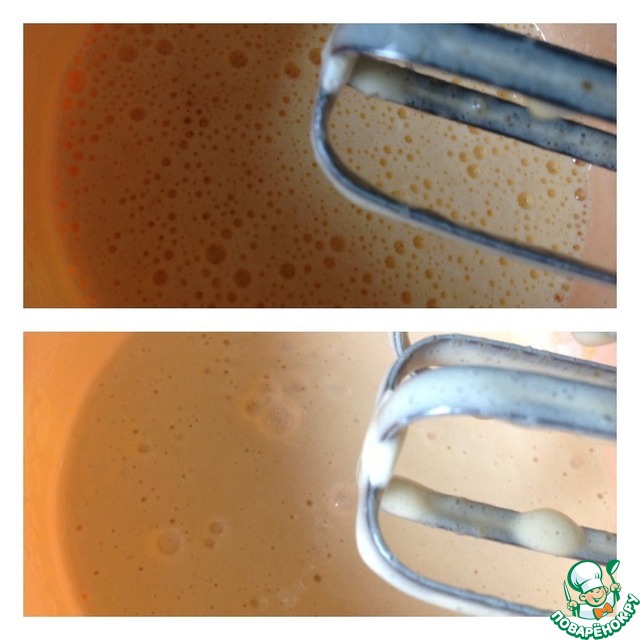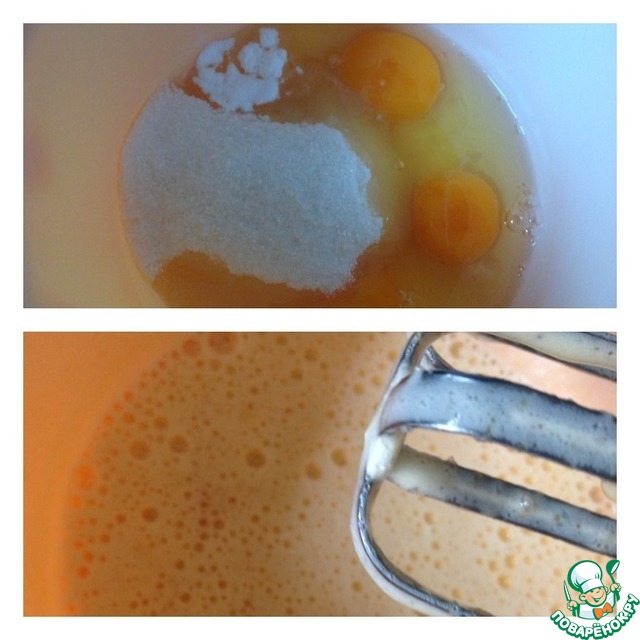 Яйца взбить с сахаром и ванилином. Добавить оба вида масла и взбить минуты 2.