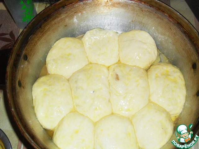 Готовые пирожки выложить на противень, слегка смазанный растительным маслом. Дать подойти пирожкам еще минут 25. |