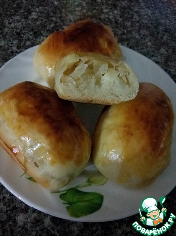 Тесто получилось нежнейшее! Пирожки очень вкусные, воздушные и ароматные! Для начинки использовала тушеную капусту и ревень!