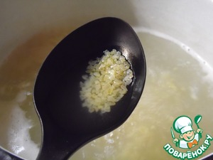 Воду довести до кипения, добавить в нее булгур, варить 10 минут.