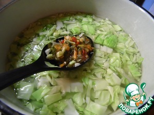 Добавить обжаренные овощи, варить еще 2-3 минуты.
