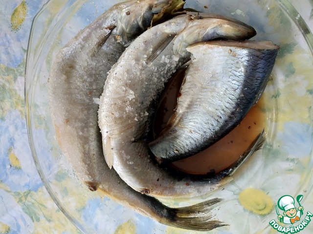 Взять селедочку, в жаберки ей насыпать немного соли (от 20 г).