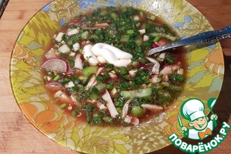 Я люблю делать окрошку на ночь, чтобы она настоялась. До чего же вкусная. Окрошка наша готова.