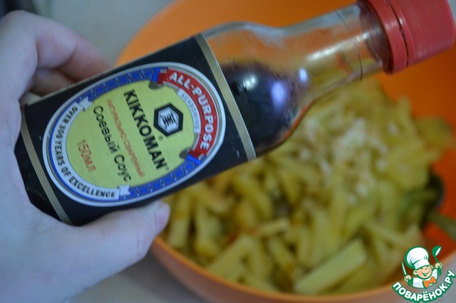 Картофель очистить, нарезать тонкой соломкой. Отварить в кипящей воде, в течение 5 минут, до готовности.