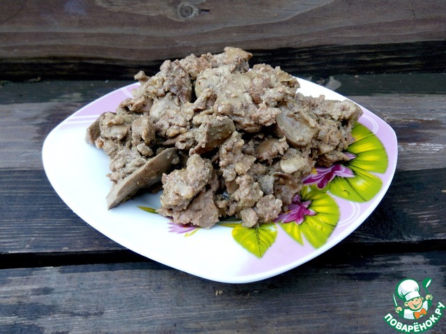 4. Когда будет готов лук, выкладываем к нему обжаренную печень, аккуратно перемешиваем, накрываем крышкой и, выключив огонь, даём постоять 5-7 минут. Блюдо готово! остаётся только подобрать желаемый гарнир, а можно просто подать как отдельное блюдо - в любом случае пальчики оближете!