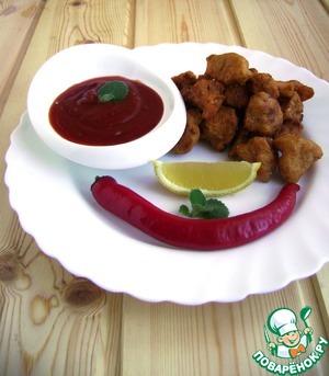 Подавать горячим с острым томатный соусом, ломтиком лимона и веточками мяты.