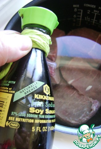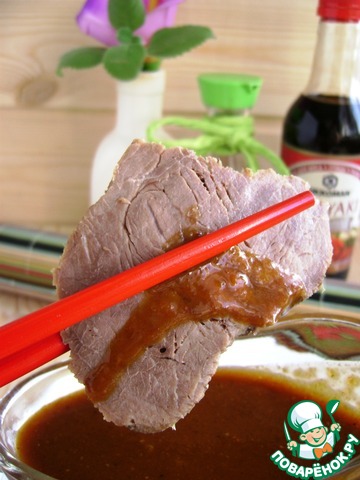 • Готовую говядину нарезать тонкими ломтиками и подавать, полив соусом.
