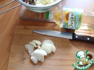 Лук режем полукольцами.