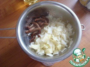Грибы и капусту откидываем на дуршлаг.