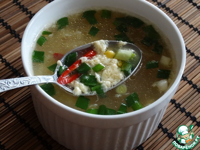 Рецепт «Суп по-китайски с кукурузой и луком»: