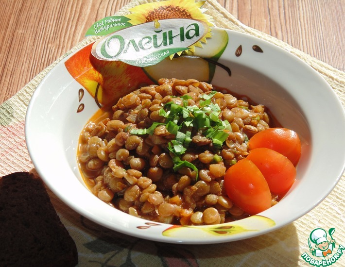 Рецепт «Чечевица с черемшой в томатном соусе»: