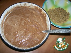Тесто вылить в форму и выпекать при температуре 140-150 град. 1 час. Готовность проверить зубочисткой. Дать коржу остыть, вынуть из формы, разрезать на 2 пласта.