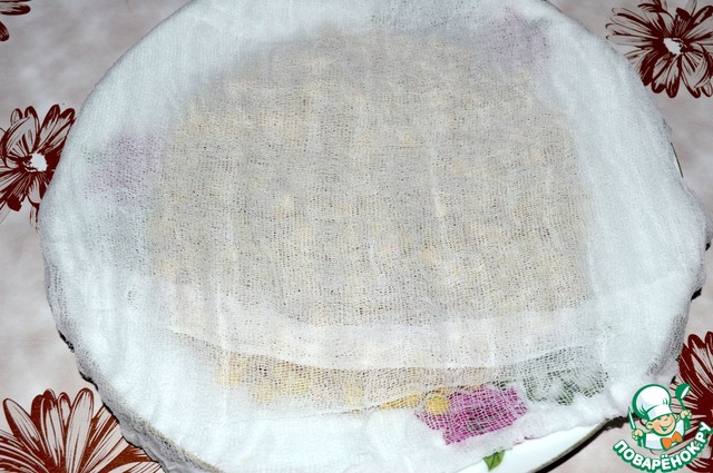 Снова промываем и укладываем на плоское блюдо, накрываем влажной марлей и проращиваем. Марля всегда должна быть влажной. Проращивание занимает от 18 часов, все зависит какие ростки вы хотите получить.