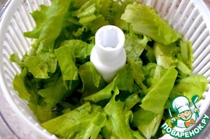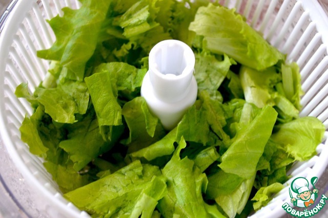 Листья салата моем, сушим и рвем руками.