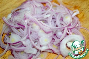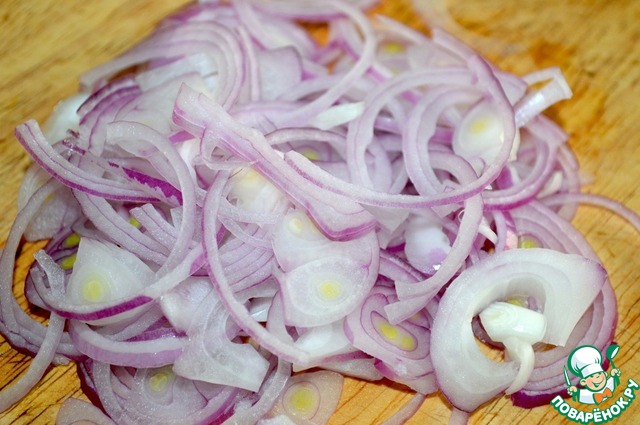 Лук чистим и режем полукольцами.