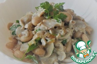 Оливковое масло смешиваем с лимонным соком. Петрушку измельчаем. Смешиваем всю постную основу салата, солим и заправляем.