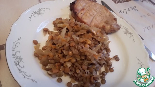 Очень простое блюдо, отличный гарнир к мясу, особенно к свинине. Приготовила его как-то раз в бытность свою студентом в общежитии с голодухи и безысходности) Чечевица была не моя, а соседки, которая просто не знала, что с ней делать и как она у нее оказалась. Получилось вкусно и очень сытно! Все соседи оценили)