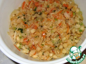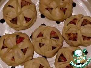 Даём продуктам в начинке подружиться, тем временем минут 5-10 разминаем заскучавшее без нашего внимания тесто.