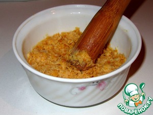 Приминаю нут толкушкой, чтобы нарушить целостность нутовых горошин. Вкус начинается с дыхания продуктами.)