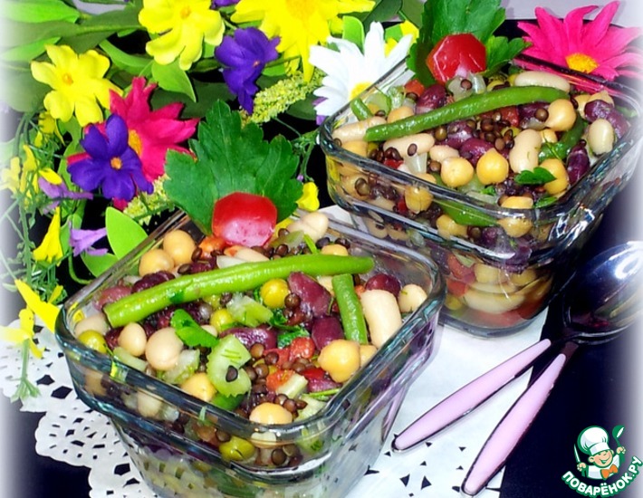 - Фасоль консервированная (красная, белая (200+200)) — 400 г