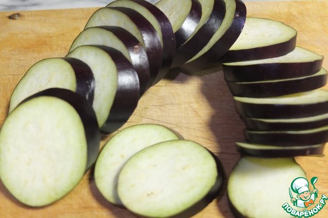 Накрываем вторым кружочком баклажана и сверху смесь.