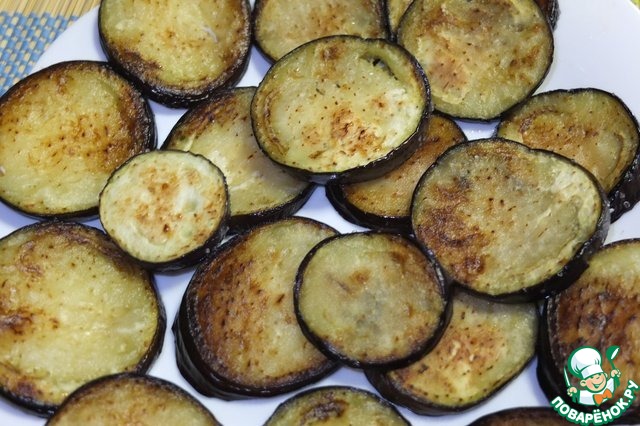 Обжариваем баклажаны в небольшом количестве растительного масла до готовности.
