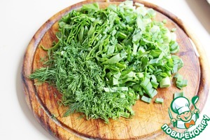 Шпинат нарезать полосками, укроп и зеленый лук мелко нарезать.