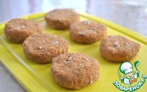 Смешиваем отруби или панировочные сухари, манку, муку с семечками. Панируем котлеты. Жарим на среднем огне в минимальном количестве масла. -