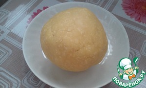 Тесто приятное, нежное, абсолютно не липнет к рукам и послушно дает скатать себя в колобок. Заворачиваем его в пищевую пленку и даем отдохнуть и охладиться в холодильнике 30 минут.